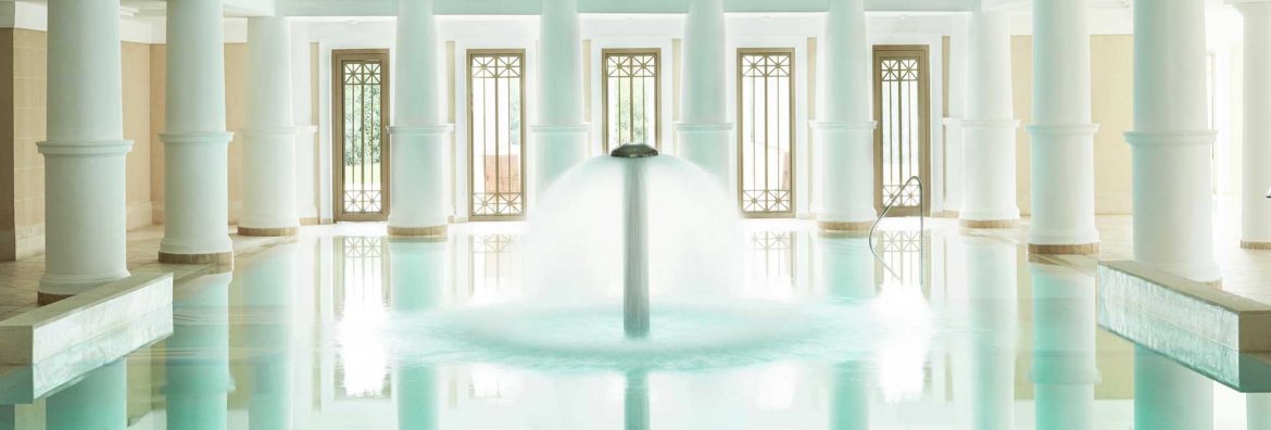 Überhaupt ist Wasser im Olympia Riviera das entscheidende Element und spielt die dominante Rolle schlechthin. So befindet sich inmitten des Areals ein 4.5000m² großes Thalasso- Center. Majestätisch wie in alten Zeiten thront das Hauptgebäude des Spas hoch oben und erstrahlt mit seinen weißen Säulen so glorreich wie einst der Zeustempel im antiken Olympia. Griechenlands größtes Thalasso- Center lässt keine Wünsche offen. Ein großer von Säulengängen umgebener Innenpool, Open- Air- Whirpools, weitere Innenpools, Saunen und Dampfbäder, Hydrotherapie etc. In 30 Behandlungsräumen und Spa- Suiten wird eine breite Palette an Anwendungen offeriert. Affusions-Massage, Algen- und Schlammpackungen, Hydrotherapie, Physio- und Bewegungstherapie, Aromatherapie, Lymphdrainage, Shiatsu und Namen wie Magic Honey Elixir, Ancient Spirit Elixir etc. Das absolute Highlight ist eine Open-Air- Massage unter fließenden, sich im Windhauch bewegenden Stoffen in einer der Freiluft- Spa-Suiten.
