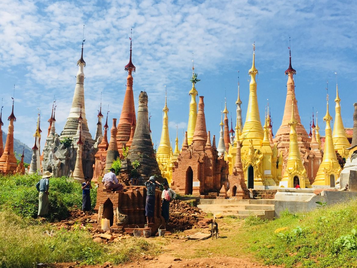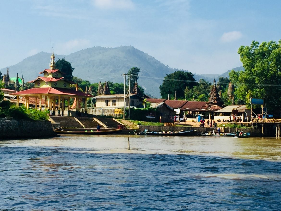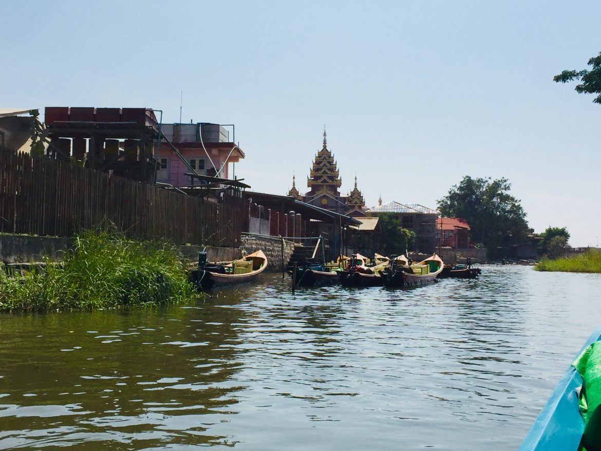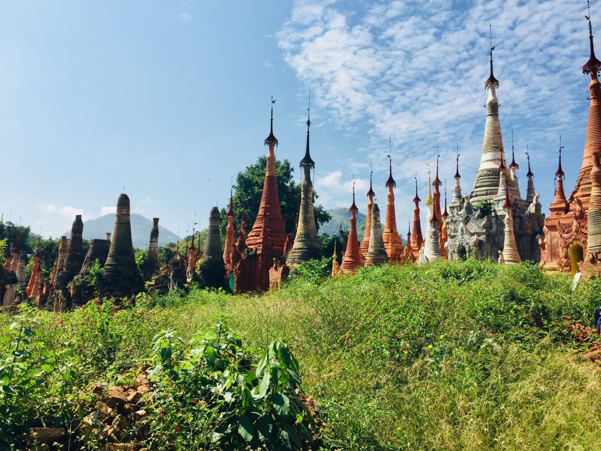 Heute erkunde ich den südlichen Teil des Sees mit dem Boot durch kleine, sich drehende Bäche, um das Dorf Indain zu erreichen. Dieses kleine Dorf am südwestlichen Ufer des Sees ist berühmt für seine Ruinen von Pagoden aus dem 16. Jahrhundert. Hier herrscht eine ruhige und friedliche Atmosphäre und die mit Büschen bewachsenen Ruinen lassen erahnen, wie es hier vor Jahrhunderten gewesen sein muss.