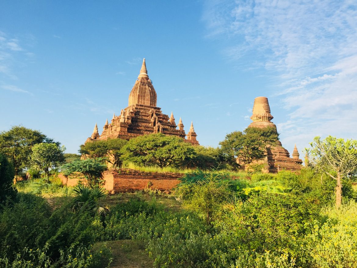 An Bord noch den Sonnenaufgang genießen… die Farben hier sind ganz besonders schön. Nach meinem frühen Frühstück steige ich m Ayeyar Jetty aus und besuche Bagan. Bagan ist eines der beliebtesten archäologischen Reiseziele Asiens und eine der zwei bedeutendsten religiösen Altstädte in Südostasien. Die Besichtigung beginnt mit einem Besuch des NyaungOo Marktes – einem typischen lokalen Markt; Es folgen Besuche in den charakteristischsten Pagoden wie der Shwezigon-Pagode – der heiligsten, von der geglaubt wird, dass sie mit Buddha-Zähnen und -Haaren bewohnt ist; Gubyaukgyi-Tempel – der Höhlentempel aus dem 13. Jahrhundert mit schönen Fresken von Szenen aus Jakatas; Anada Temple – eines der Meisterwerke, die in Bagan erhalten geblieben sind und als Mon-Architektur-Stil gelten.