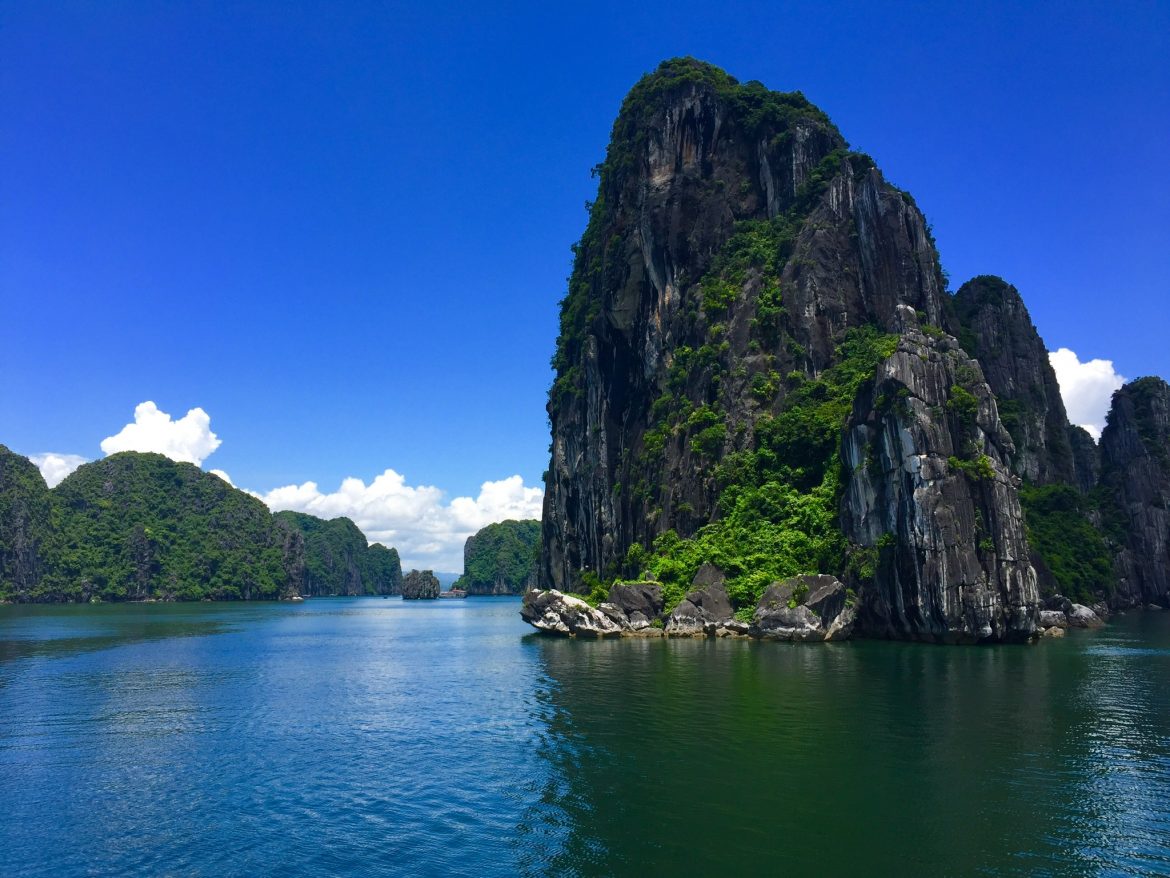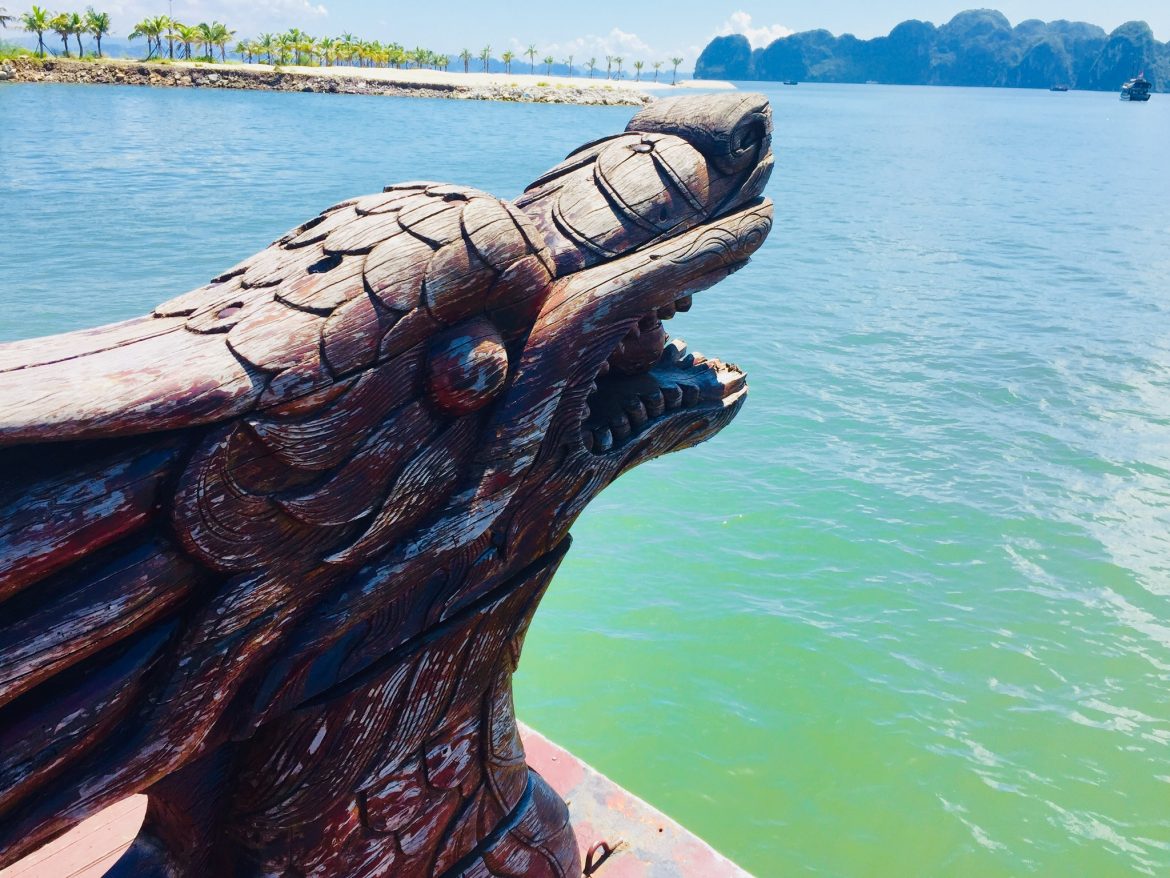 Die Ha Long Bay gehört zum Unesco Weltkulturerbe und das zu recht. Rund 2000 Kalksteininseln in den verschiedensten Formen und Größen steigen zum großen Teil senkrecht aus dem smaragdgrünen Wasser hervor. Wir haben schönstes Wetter und können ein unvergessliches Schauspiel genießen, während die alte Holzdschunke gemächlich ihre Bahnen zieht.