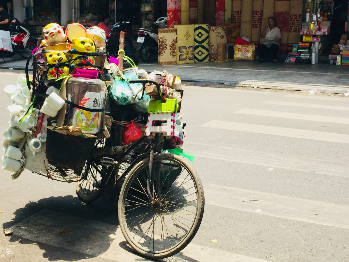Mit der Rikscha lassen wir uns durch die Altstadt Hanois gondeln…Gondeln im wahrsten Sinne des Wortes. Es herrscht unerträgliche Hitze und Feuchtigkeit und mein Fahrer ist nicht mehr der Jüngste. Aber ich belohne ihn mit einem angemessenen Trinklgeld.